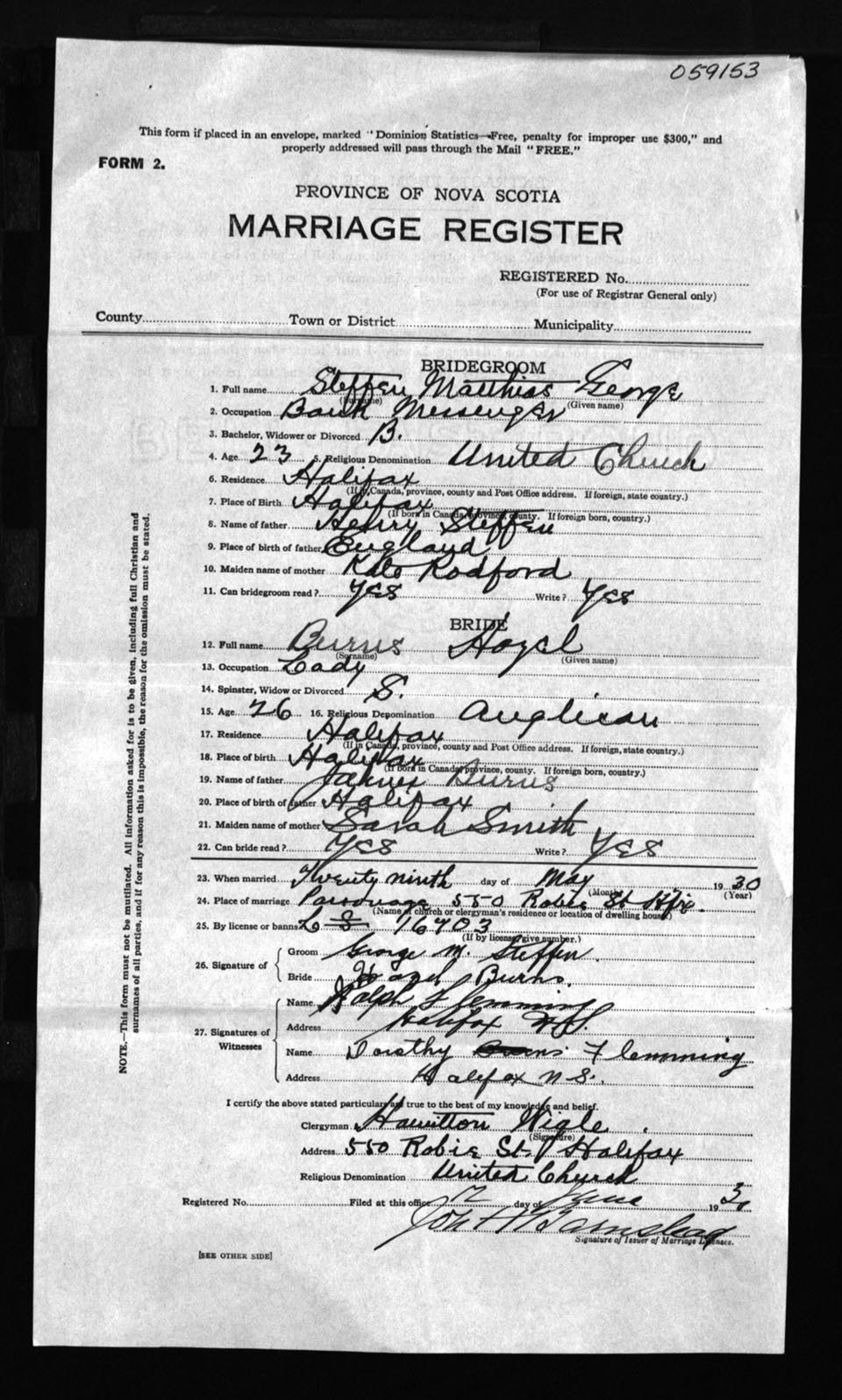 Registration: Year: 1930 number: 59153