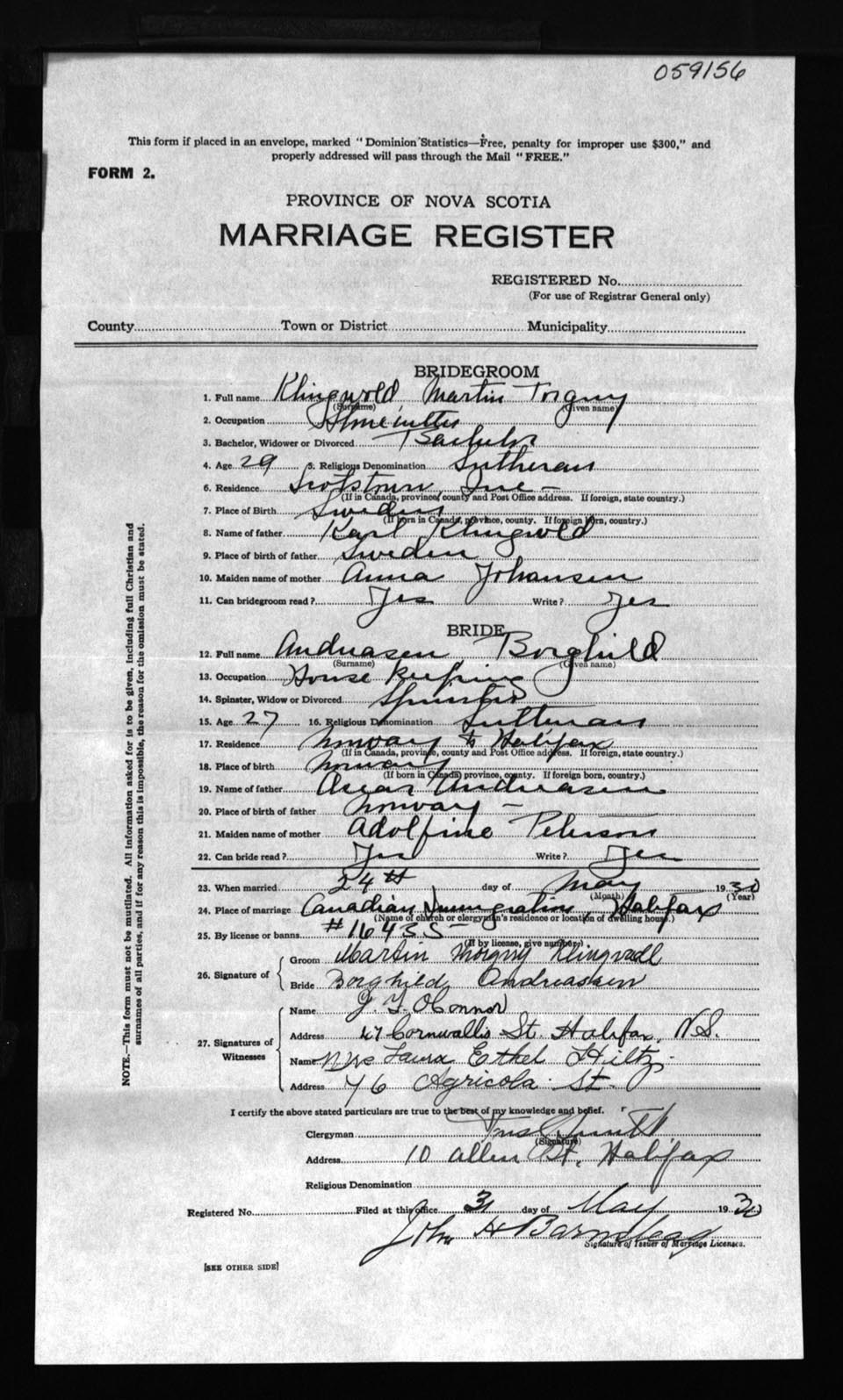 Registration: Year: 1930 number: 59156