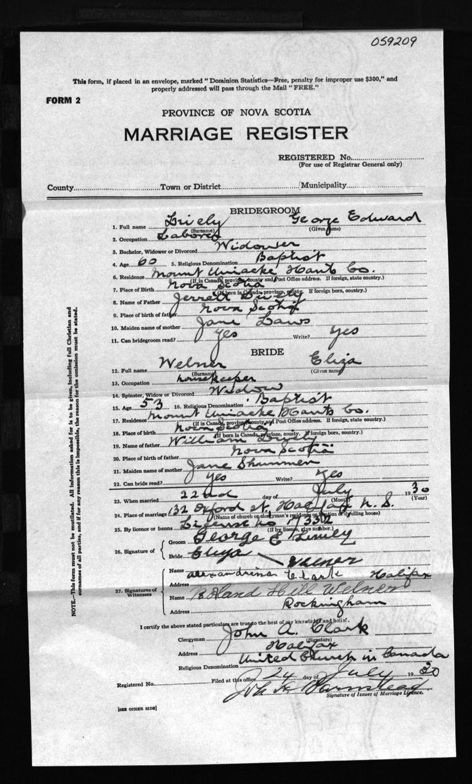 Registration: Year: 1930 number: 59209