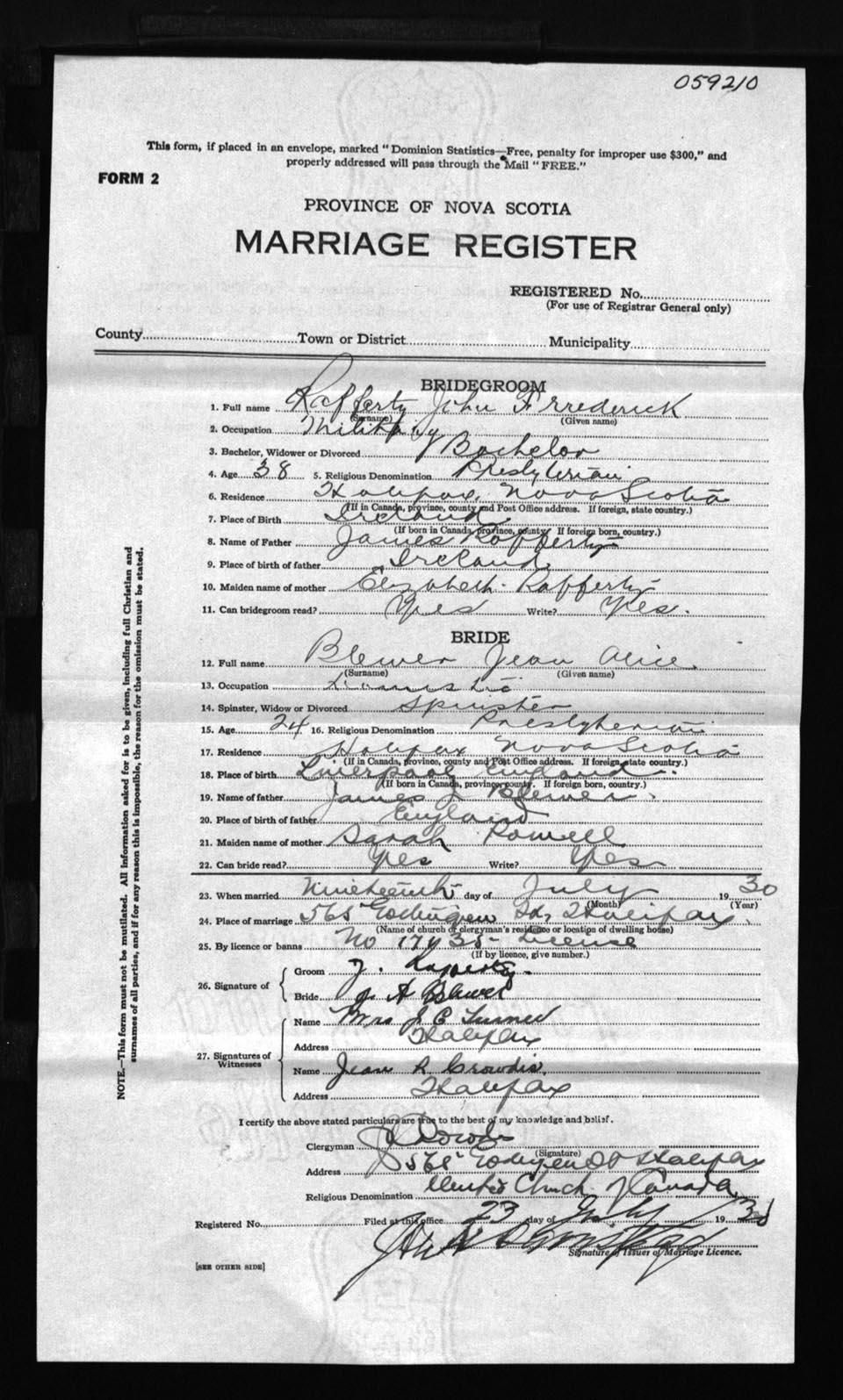 Registration: Year: 1930 number: 59210