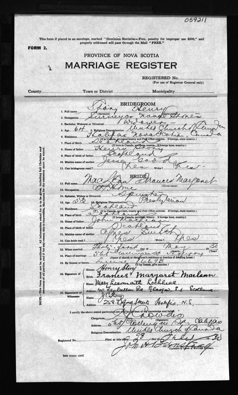 Registration: Year: 1930 number: 59211