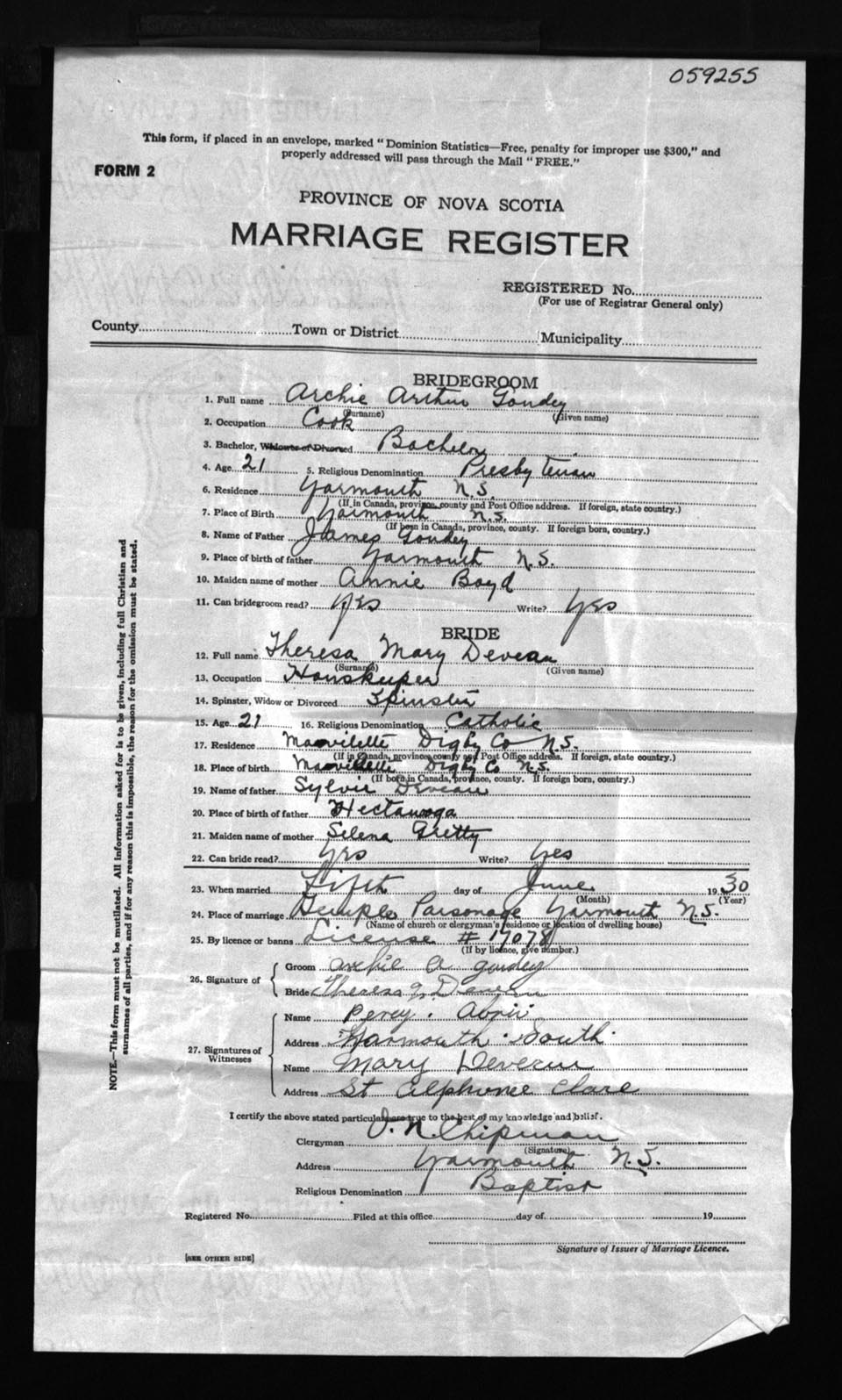 Registration: Year: 1930 number: 59255
