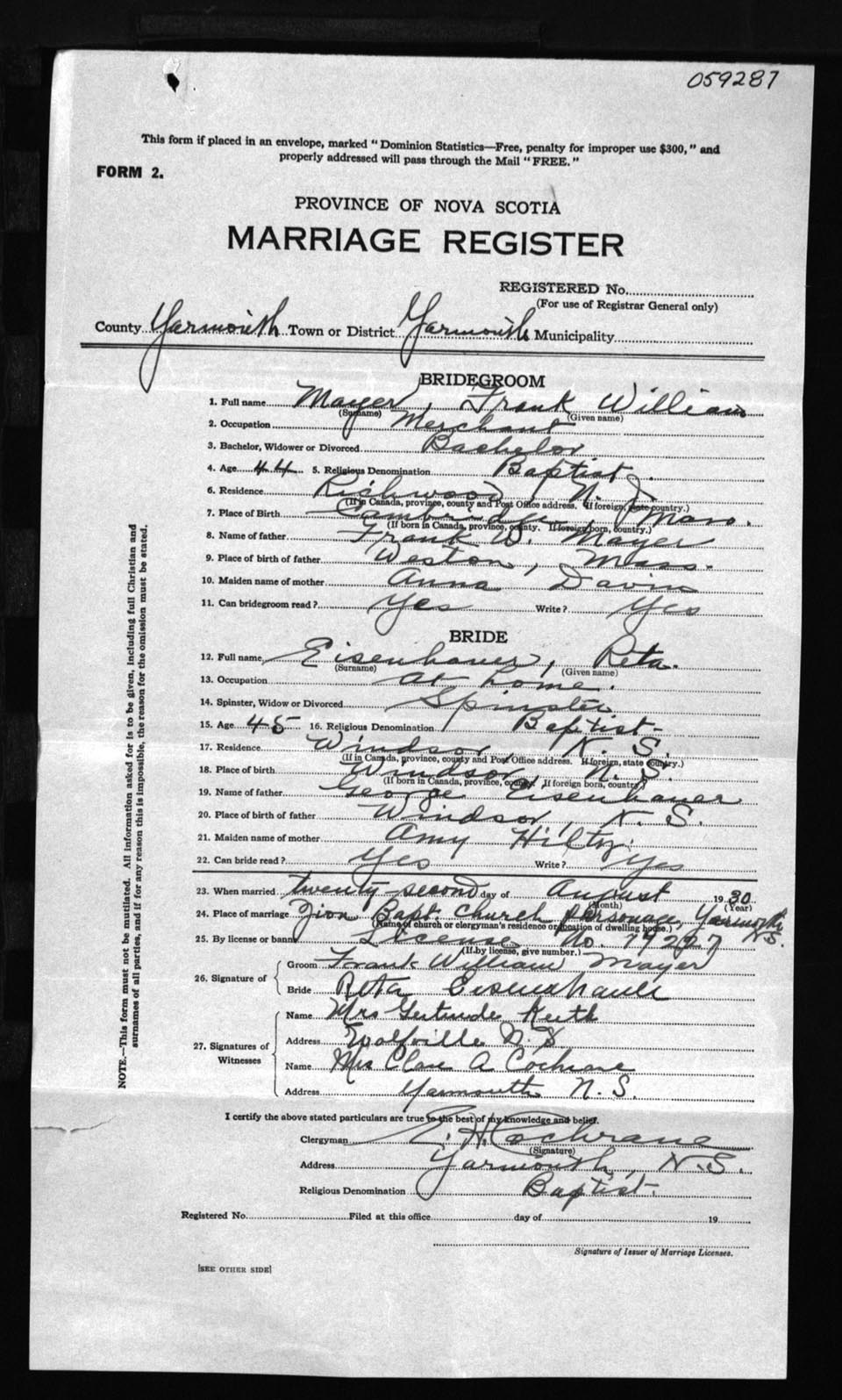 Registration: Year: 1930 number: 59287