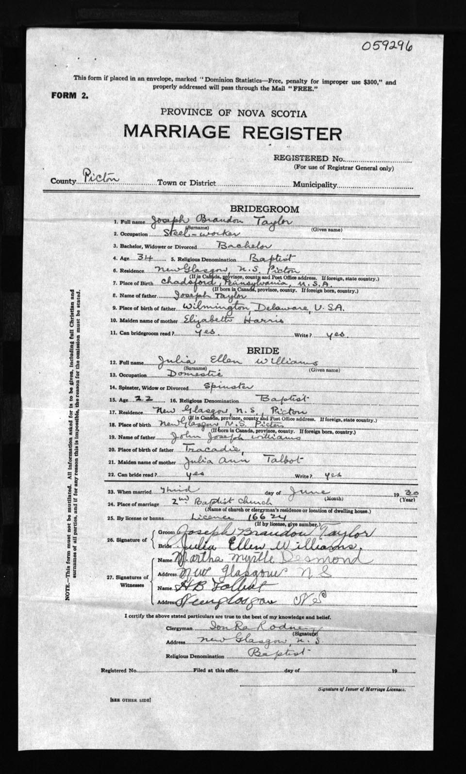 Registration: Year: 1930 number: 59296