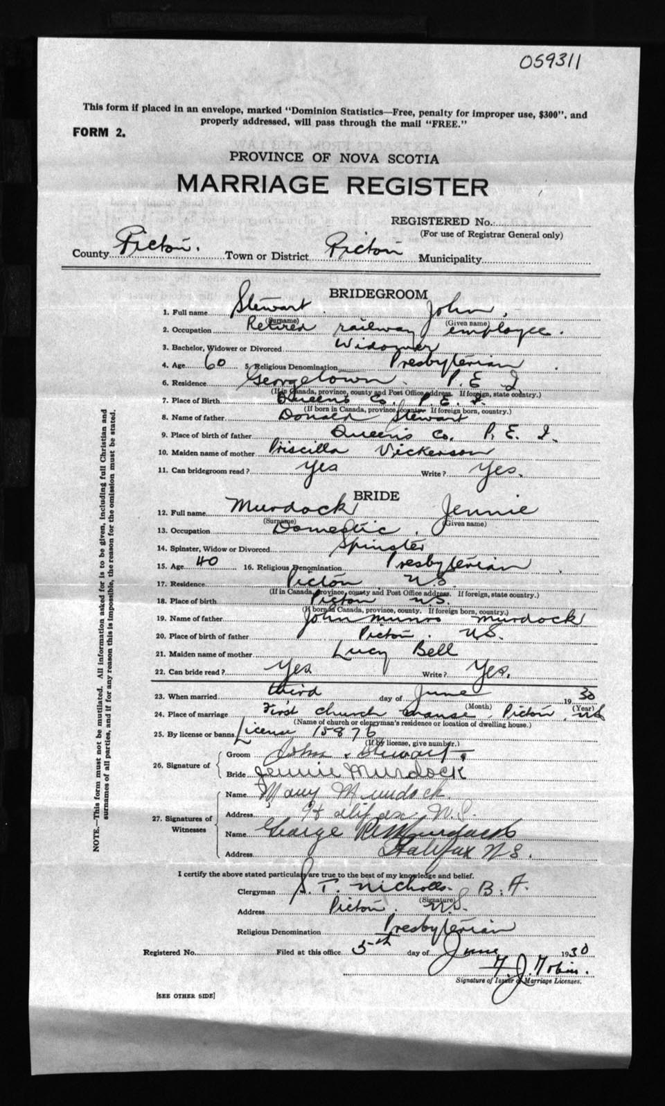 Registration: Year: 1930 number: 59311