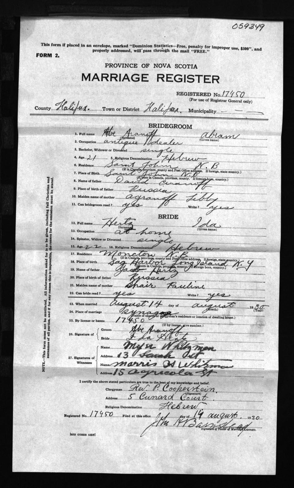 Registration: Year: 1930 number: 59349