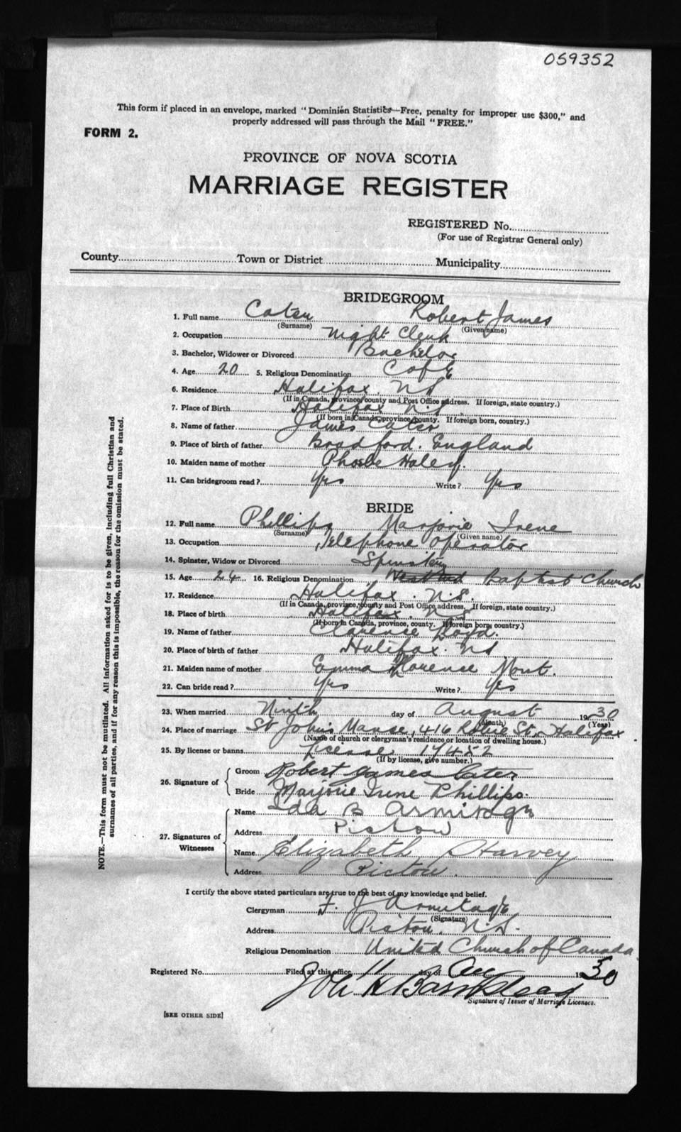 Registration: Year: 1930 number: 59352