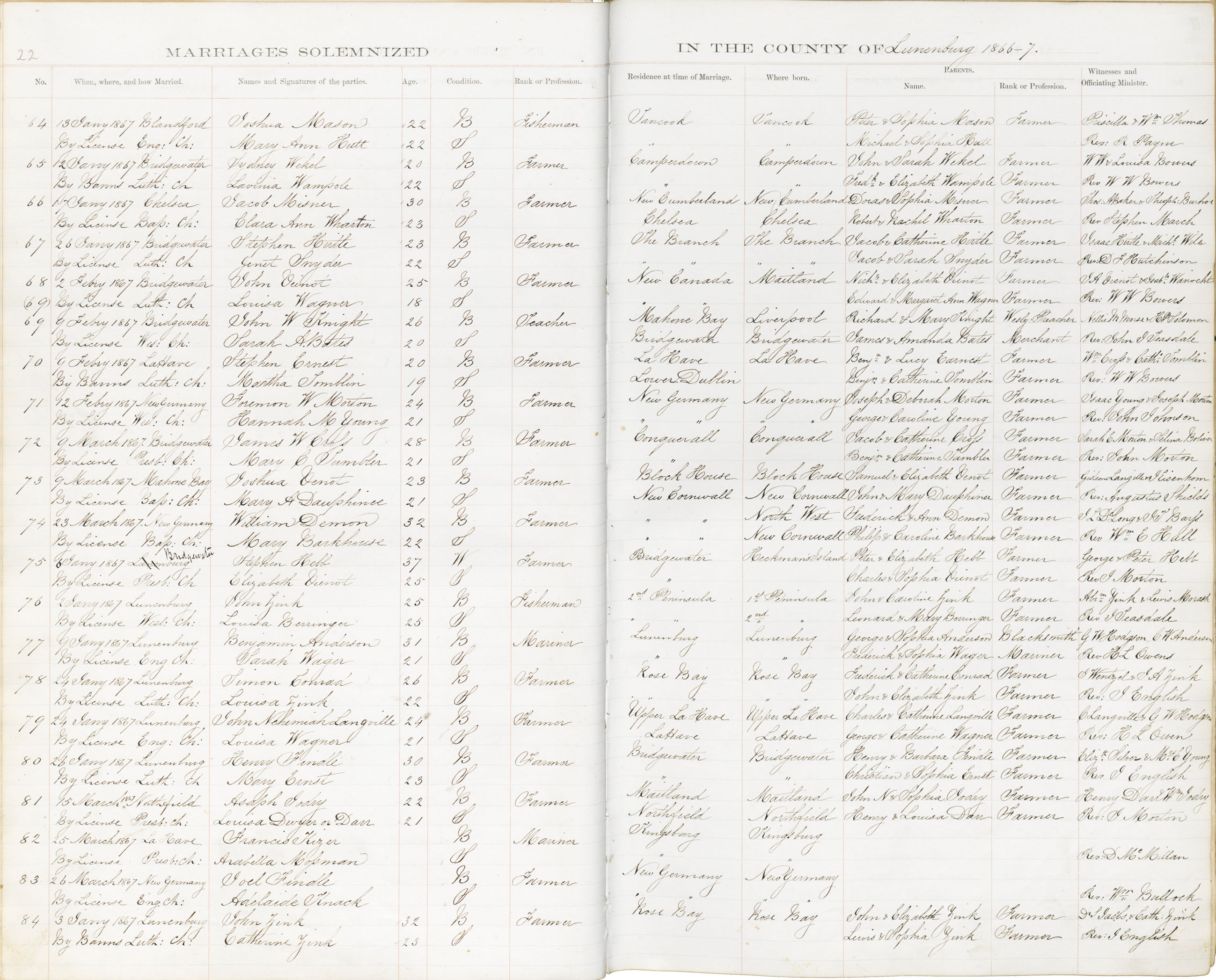 Registration: Year: 1867 book: 1828 page: 22 number: 84