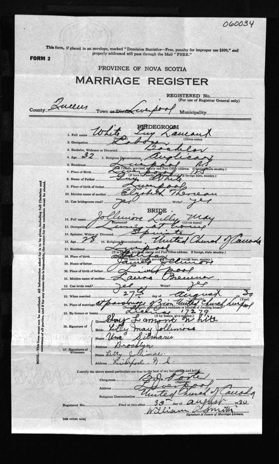 Registration: Year: 1930 number: 6034