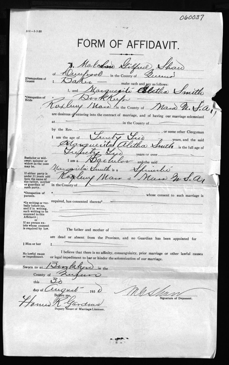 Registration: Year: 1930 number: 6037