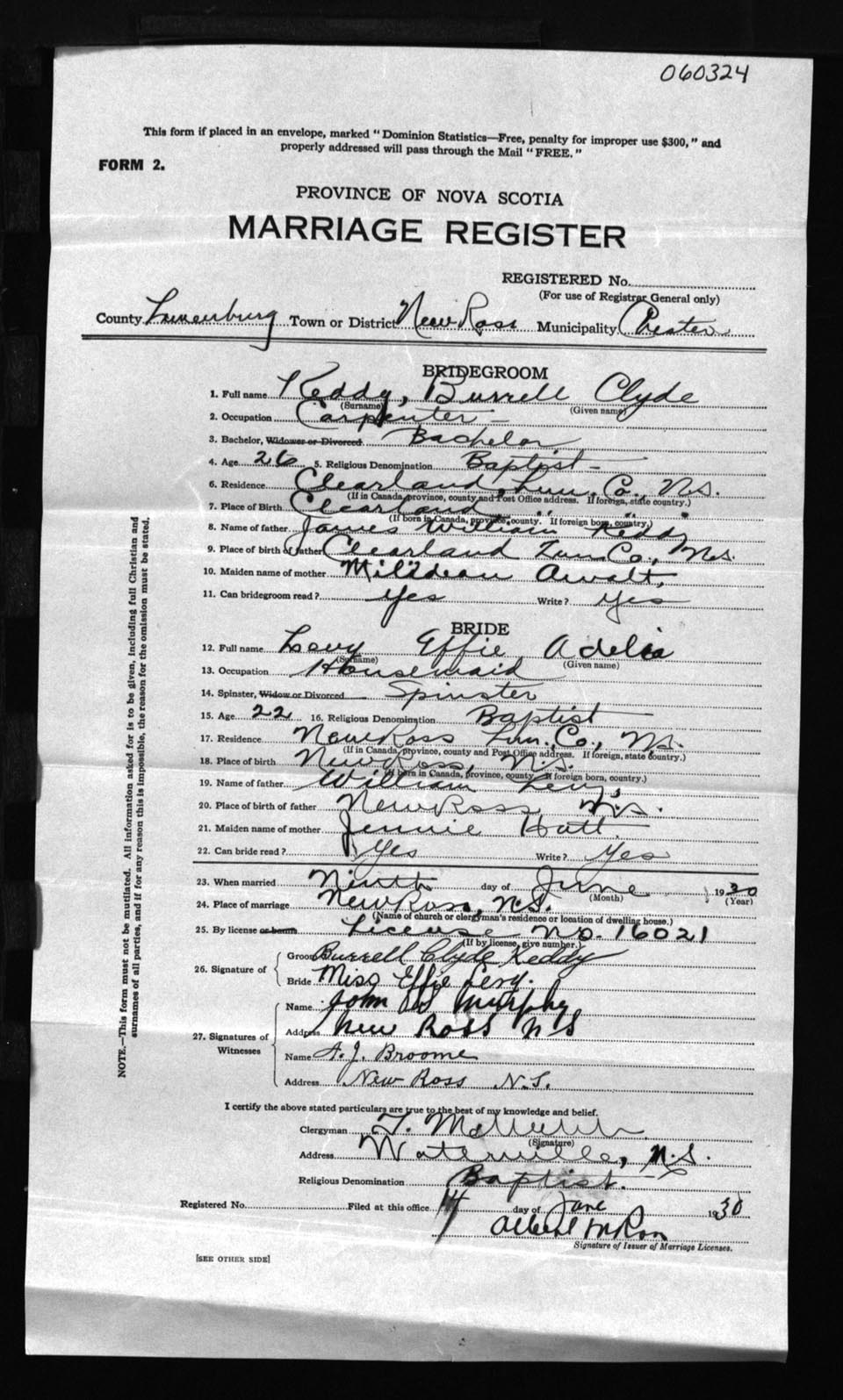Registration: Year: 1930 number: 60324