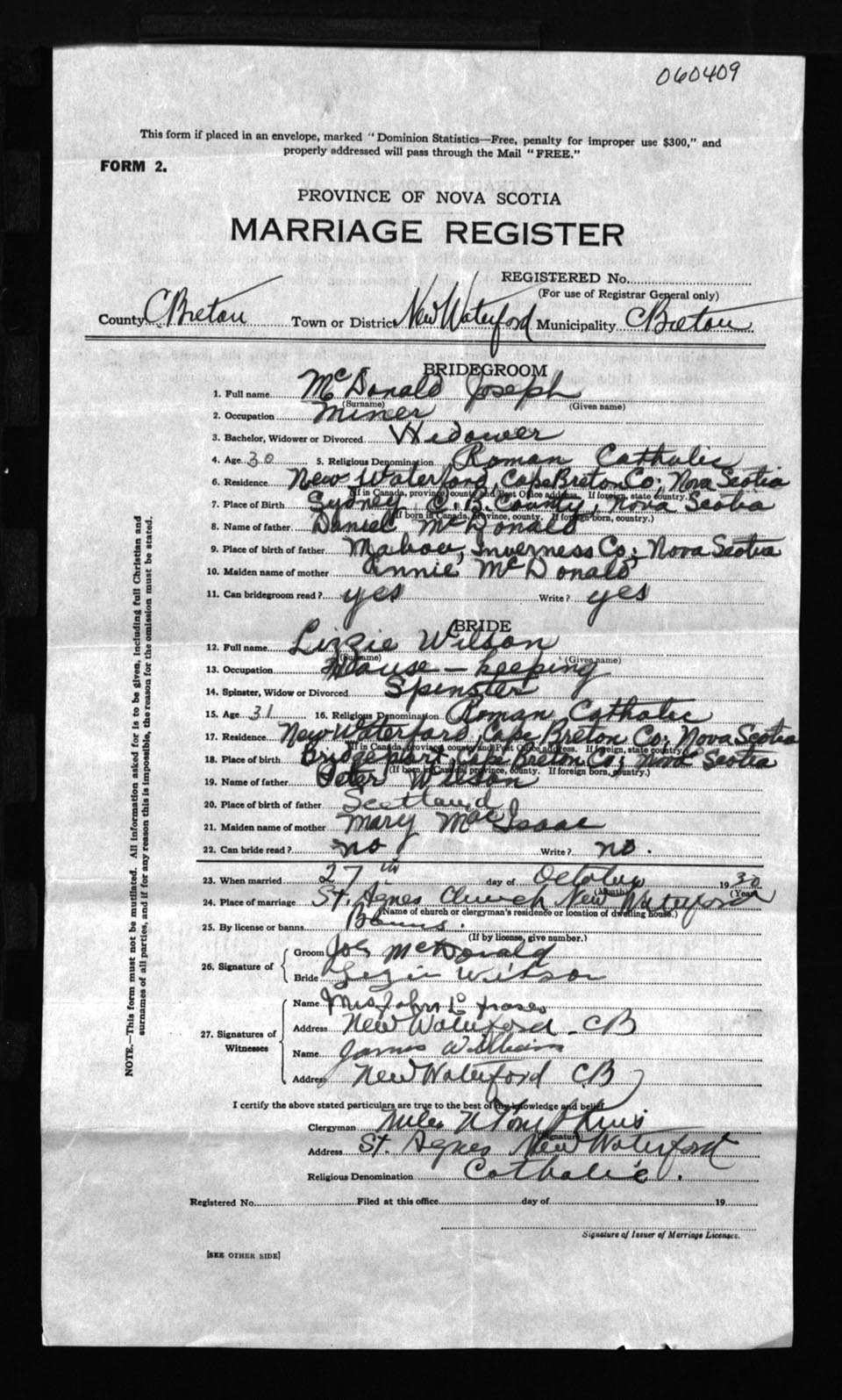 Registration: Year: 1930 number: 60409