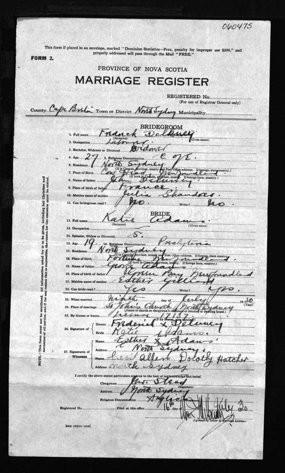 Registration: Year: 1930 number: 60475