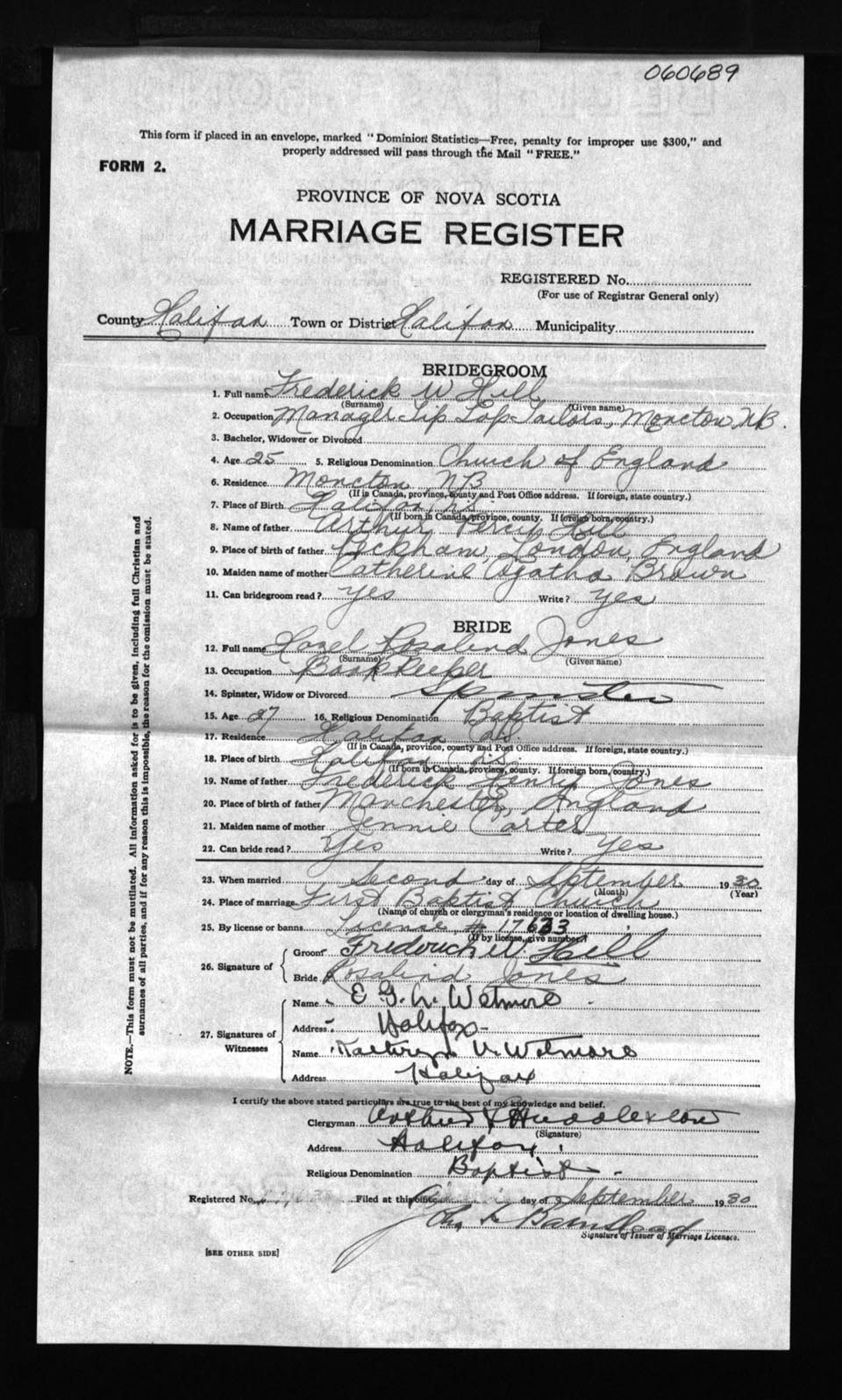 Registration: Year: 1930 number: 60689