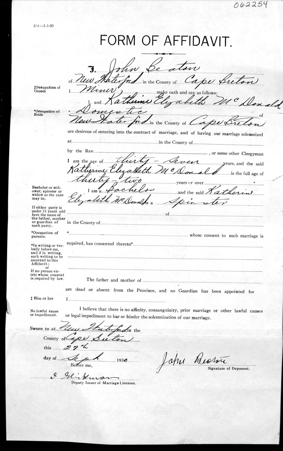 Registration: Year: 1930 number: 62254