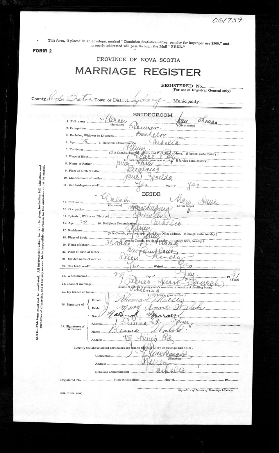 Registration: Year: 1931 number: 61739