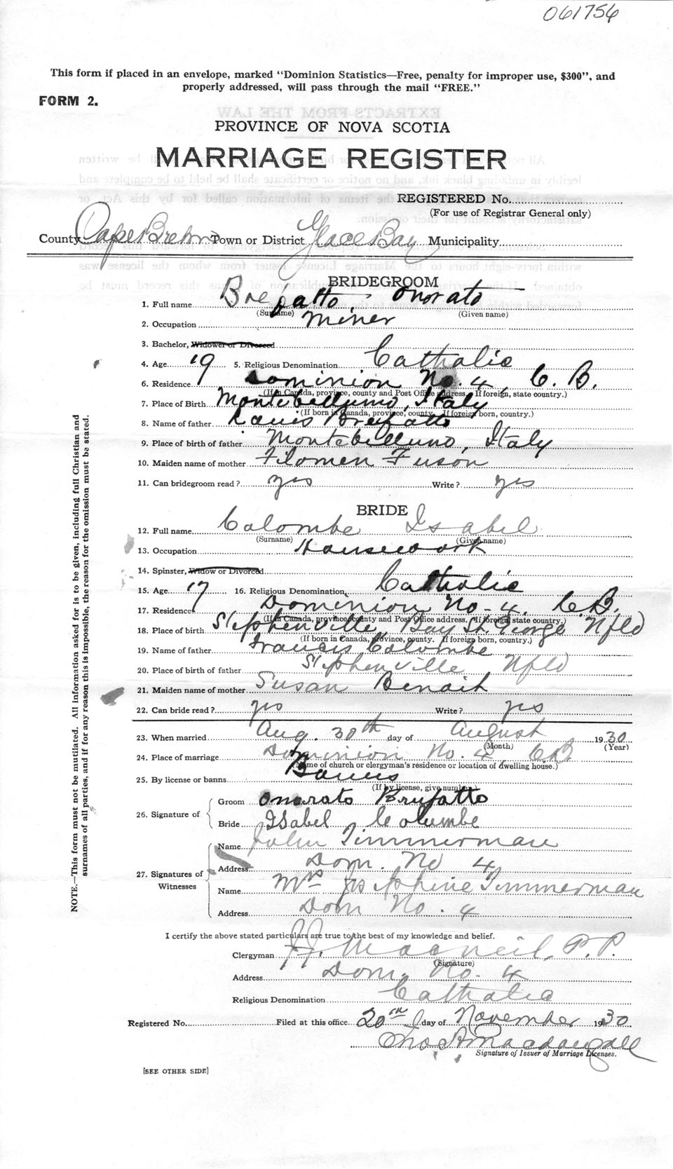 Registration: Year: 1930 number: 61756