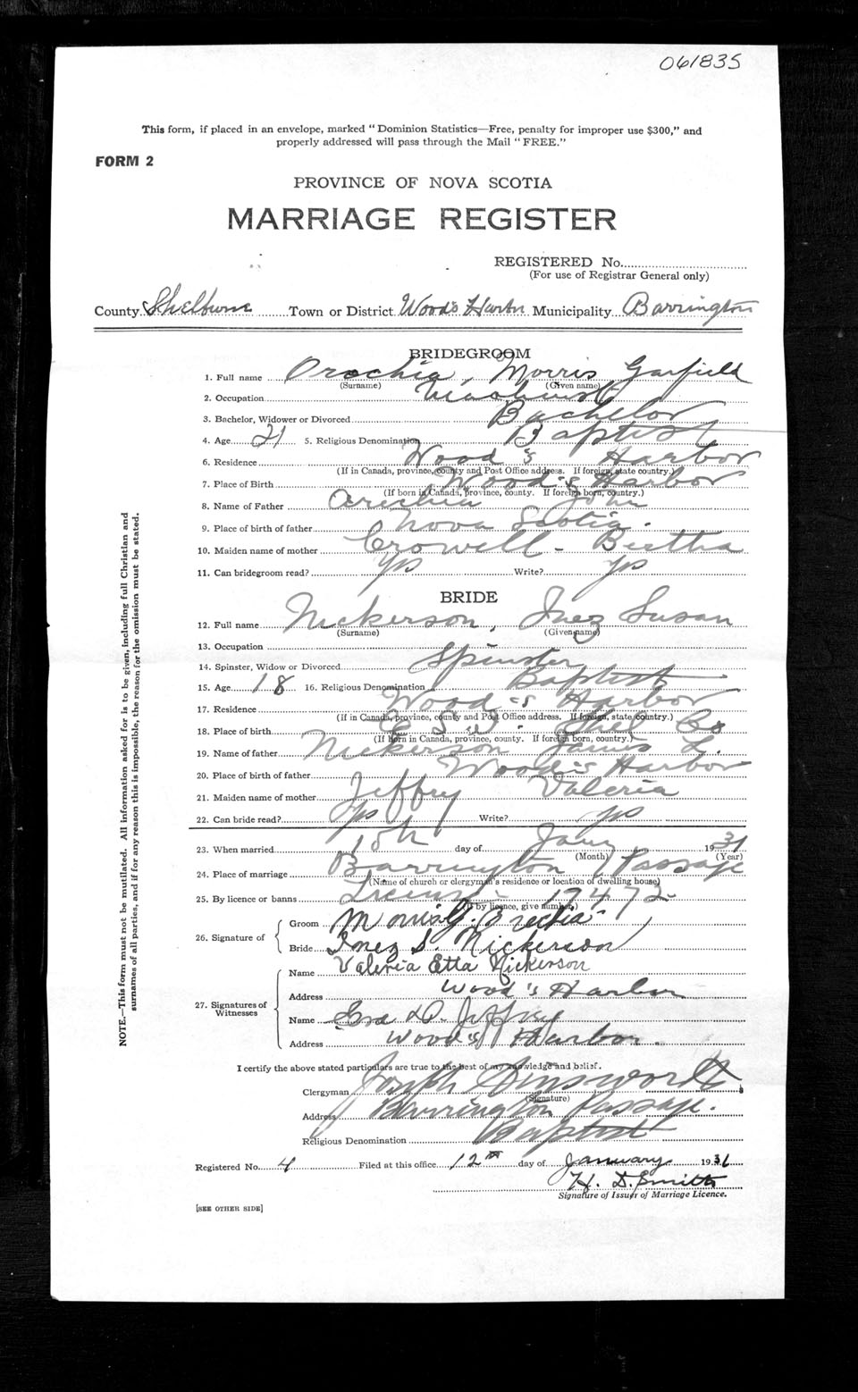 Registration: Year: 1931 number: 61835