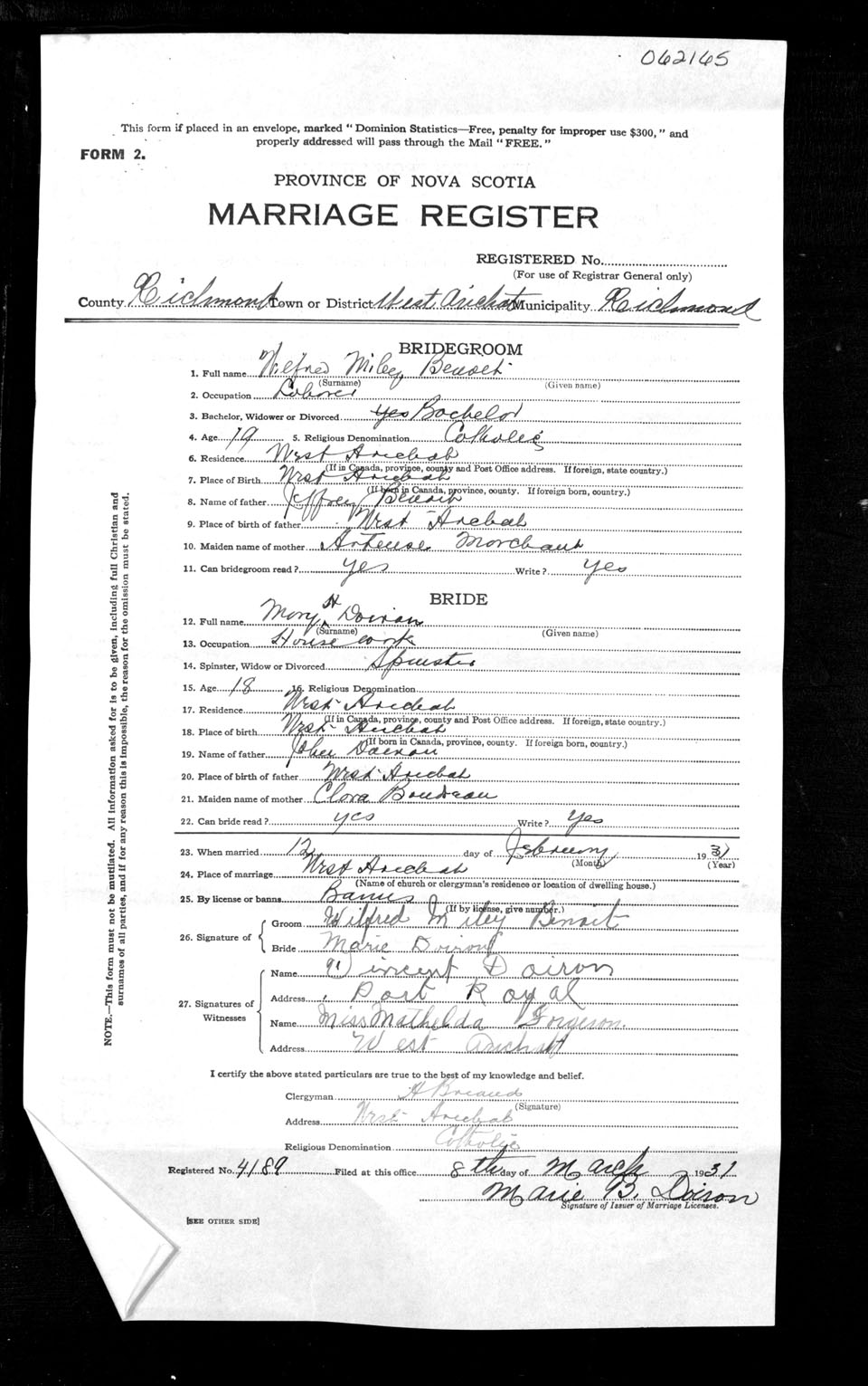 Registration: Year: 1931 number: 62165