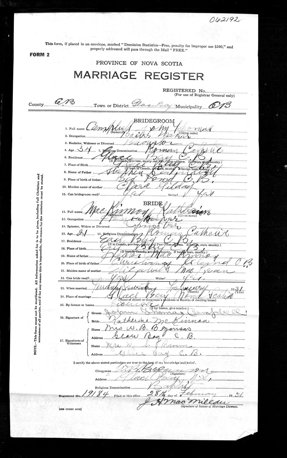 Registration: Year: 1931 number: 62192
