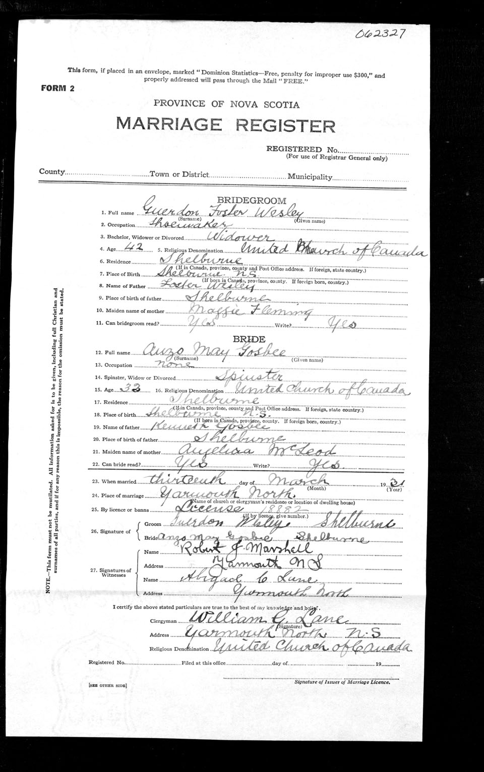 Registration: Year: 1931 number: 62327
