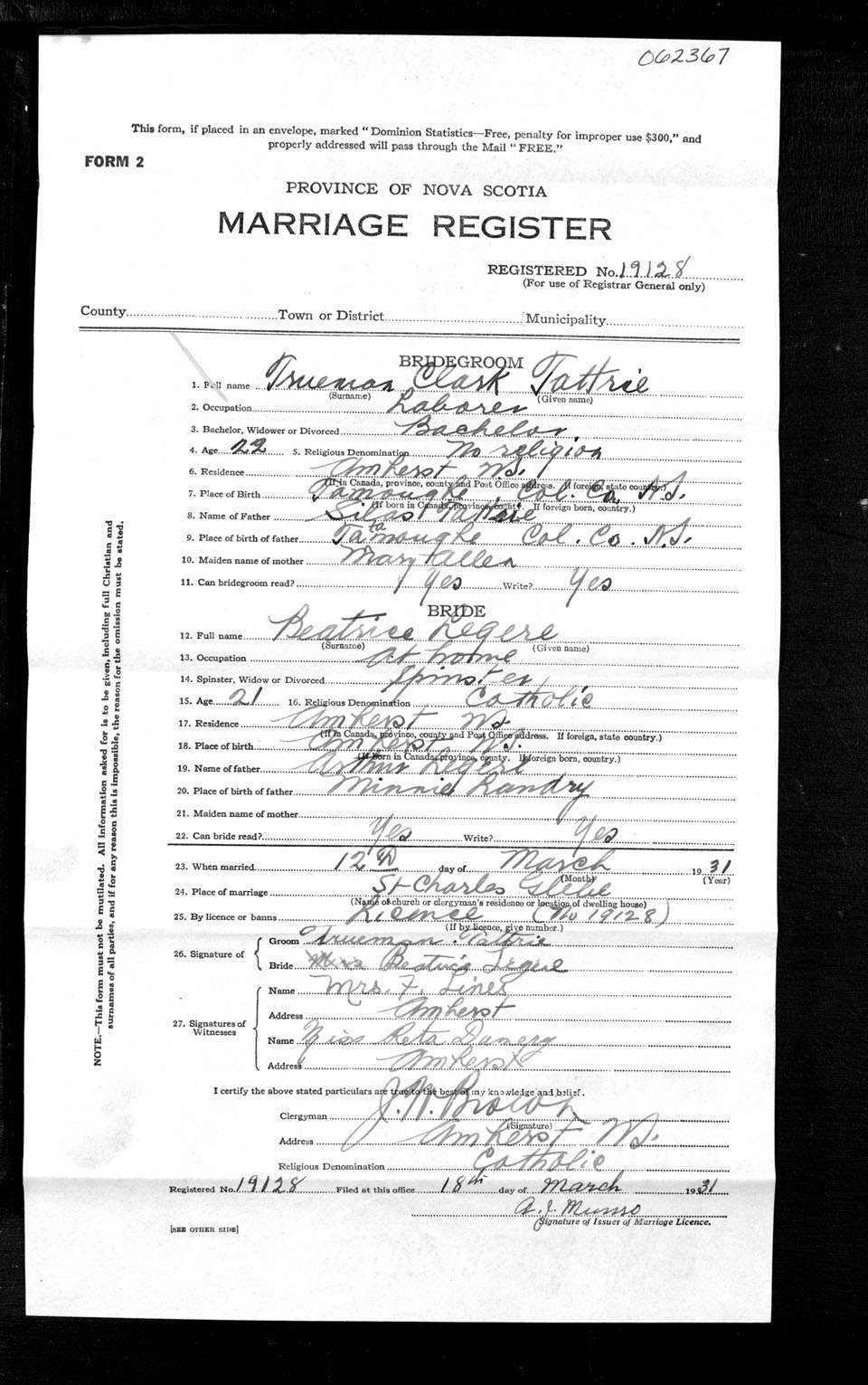 Registration: Year: 1931 number: 62367