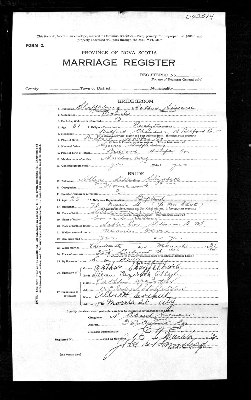 Registration: Year: 1931 number: 62514