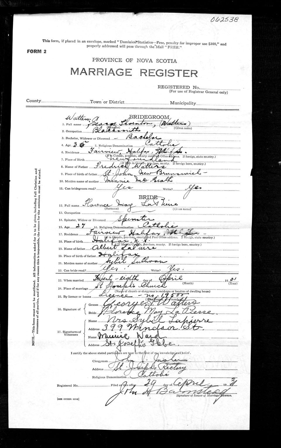 Registration: Year: 1931 number: 62538