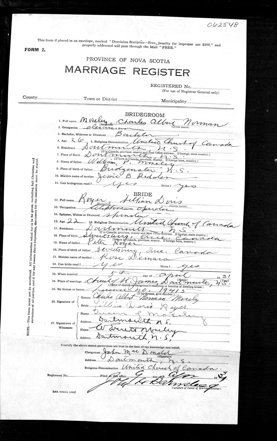 Registration: Year: 1931 number: 62548