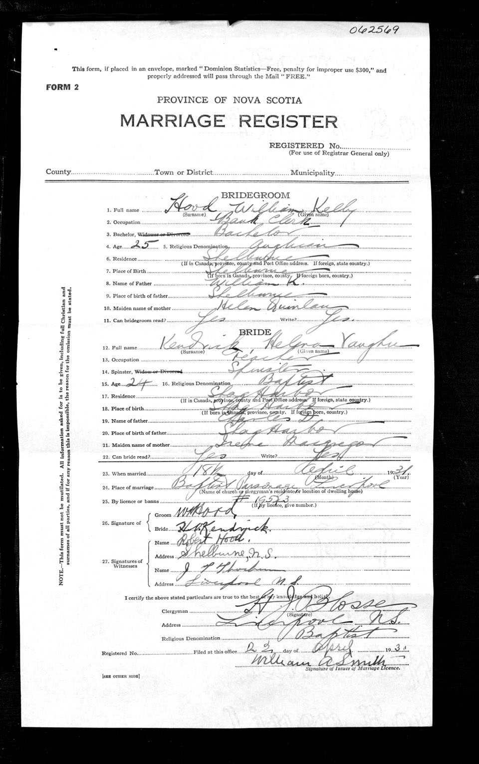 Registration: Year: 1931 number: 62569