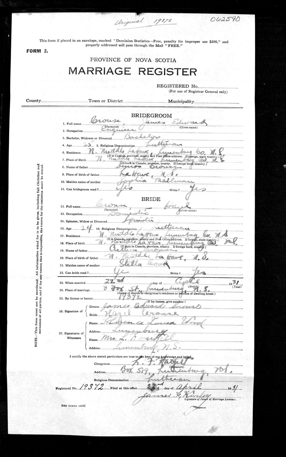 Registration: Year: 1931 number: 62590