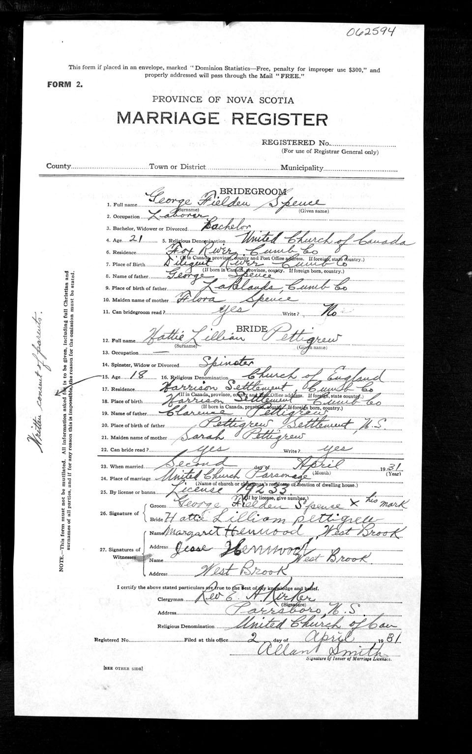 Registration: Year: 1931 number: 62594