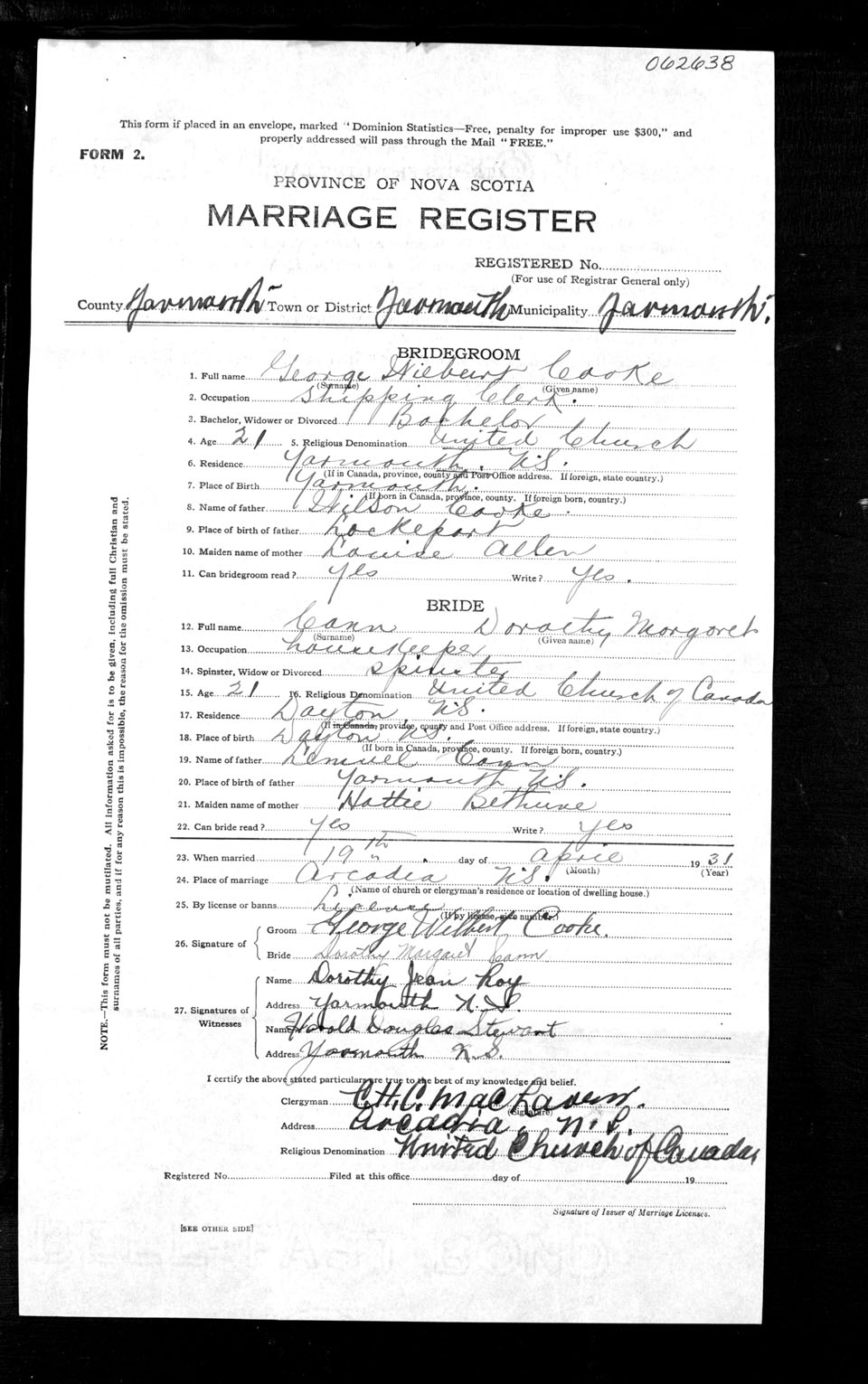 Registration: Year: 1931 number: 62638