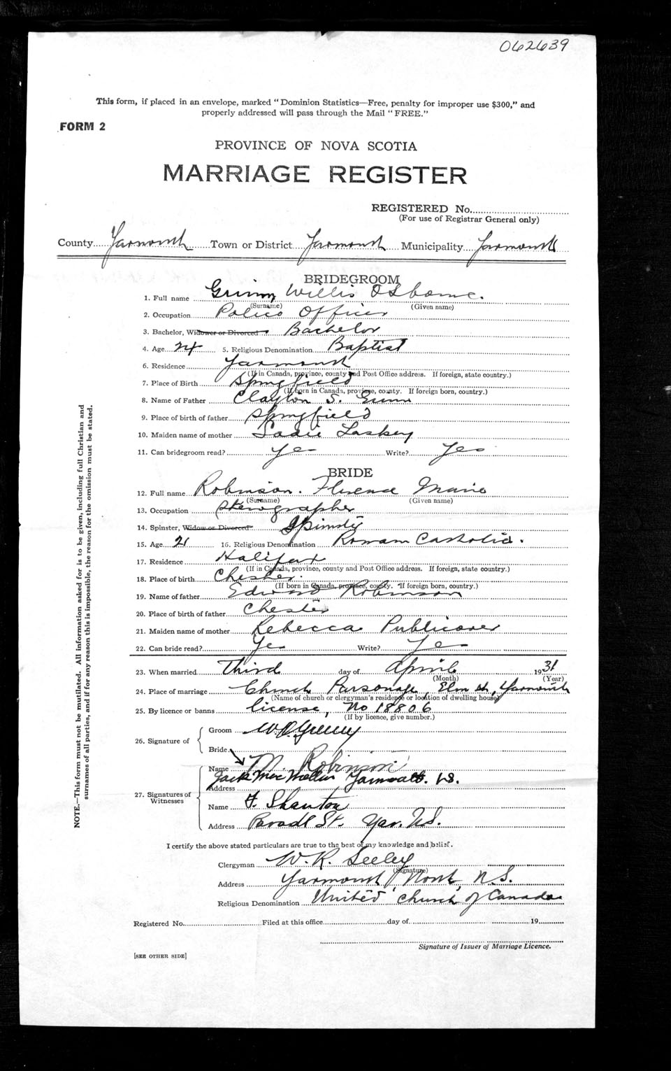 Registration: Year: 1931 number: 62639