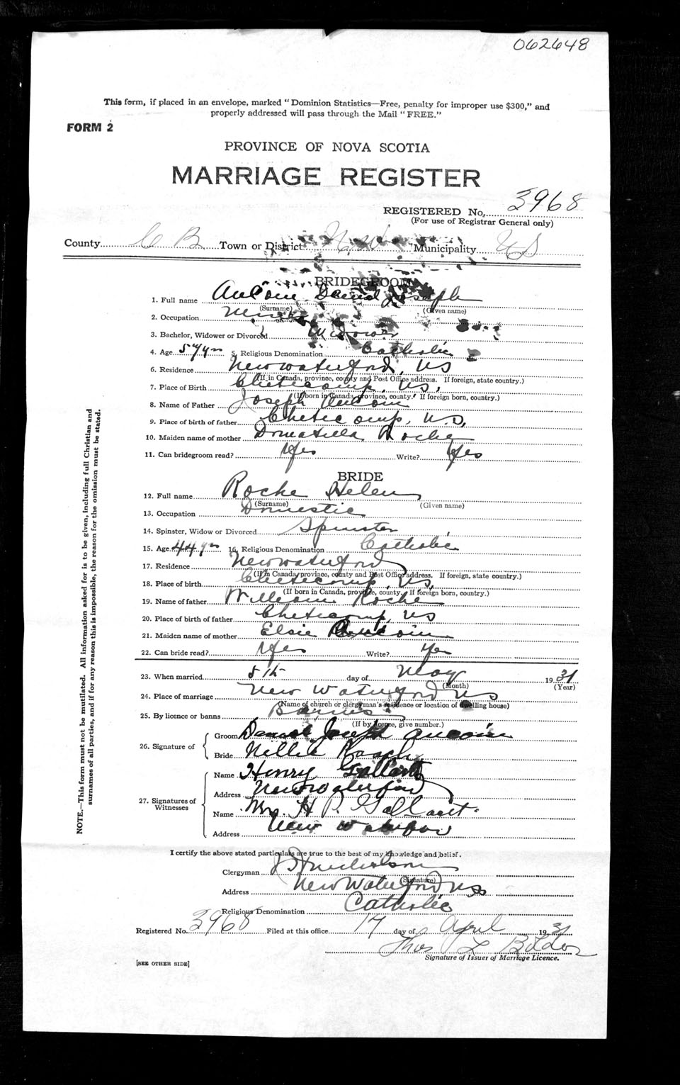 Registration: Year: 1931 number: 62648