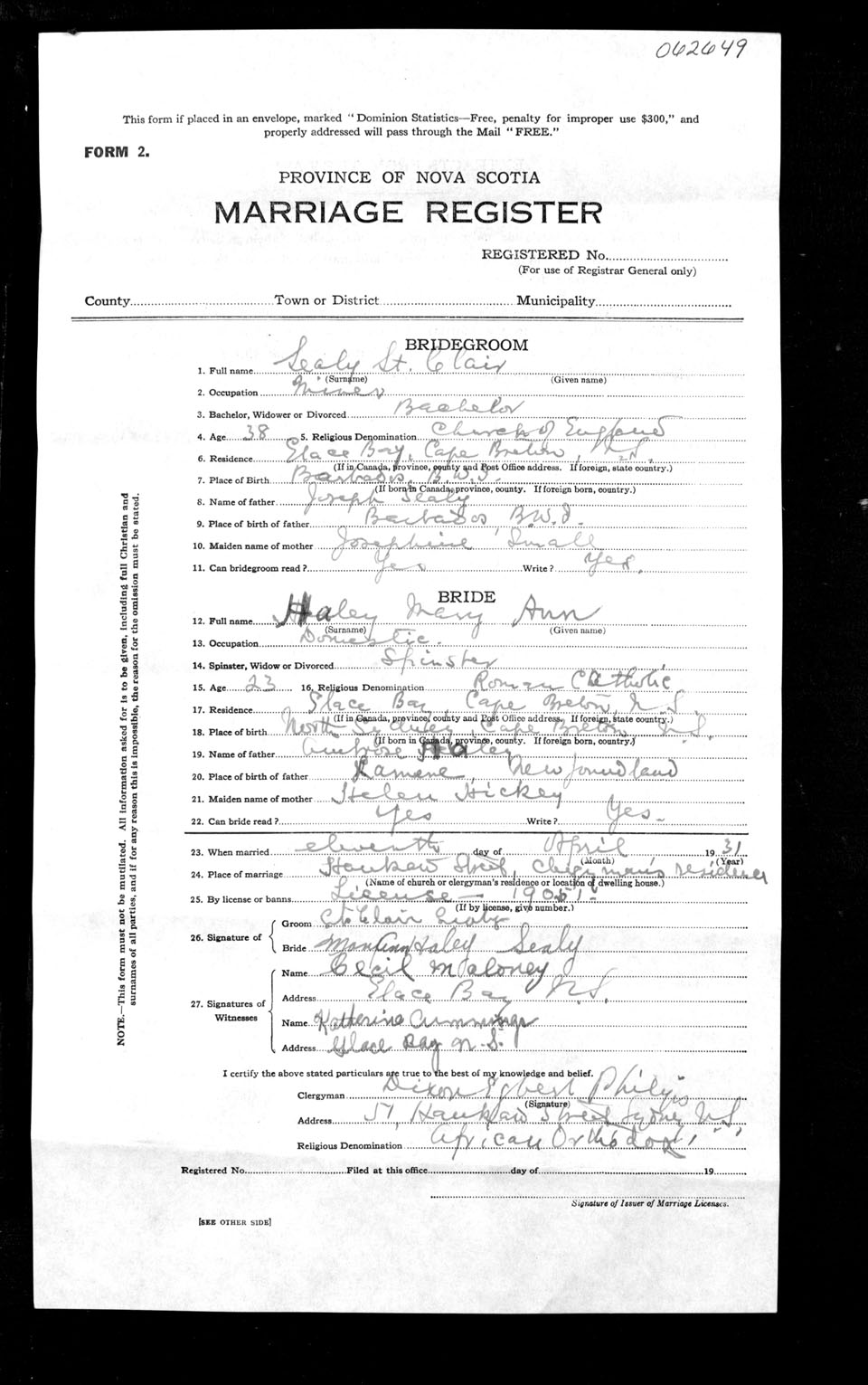 Registration: Year: 1931 number: 62649