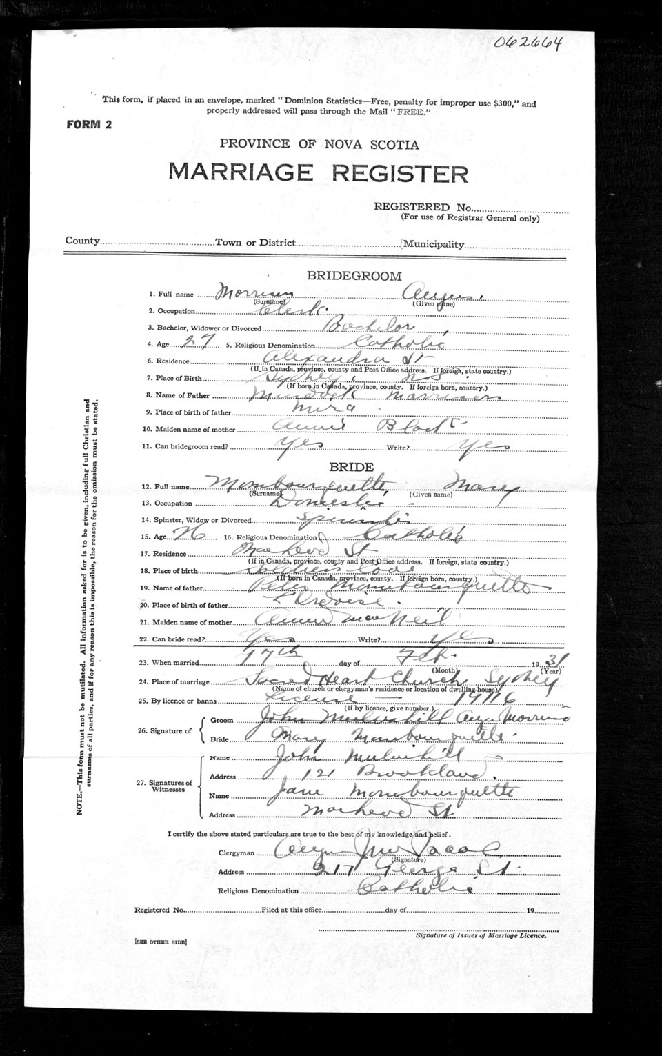 Registration: Year: 1931 number: 62664