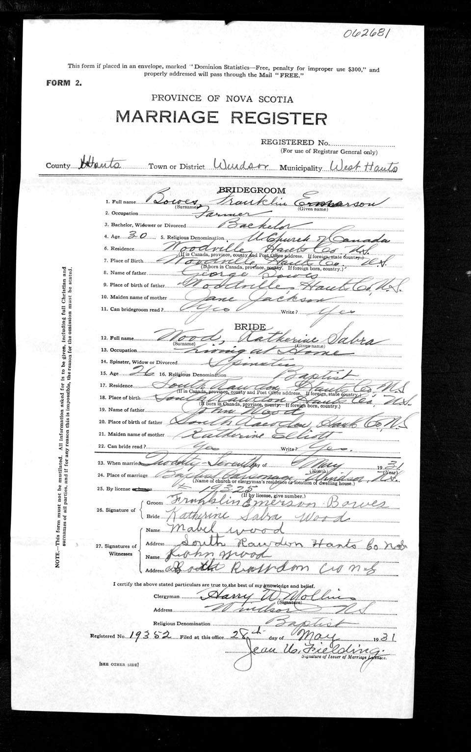 Registration: Year: 1931 number: 62681