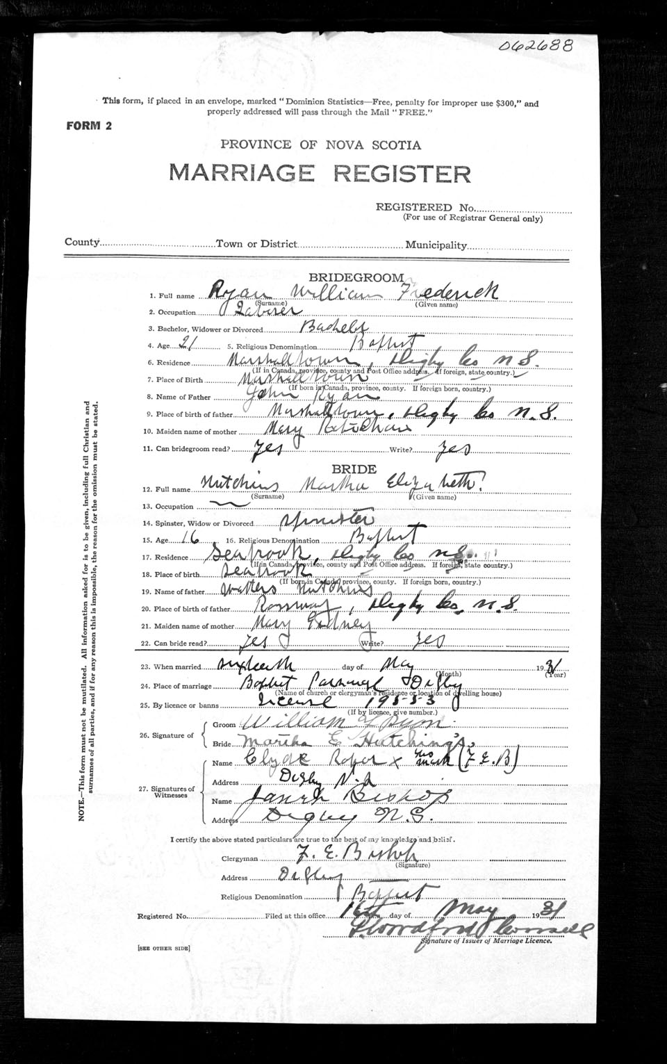 Registration: Year: 1931 number: 62688