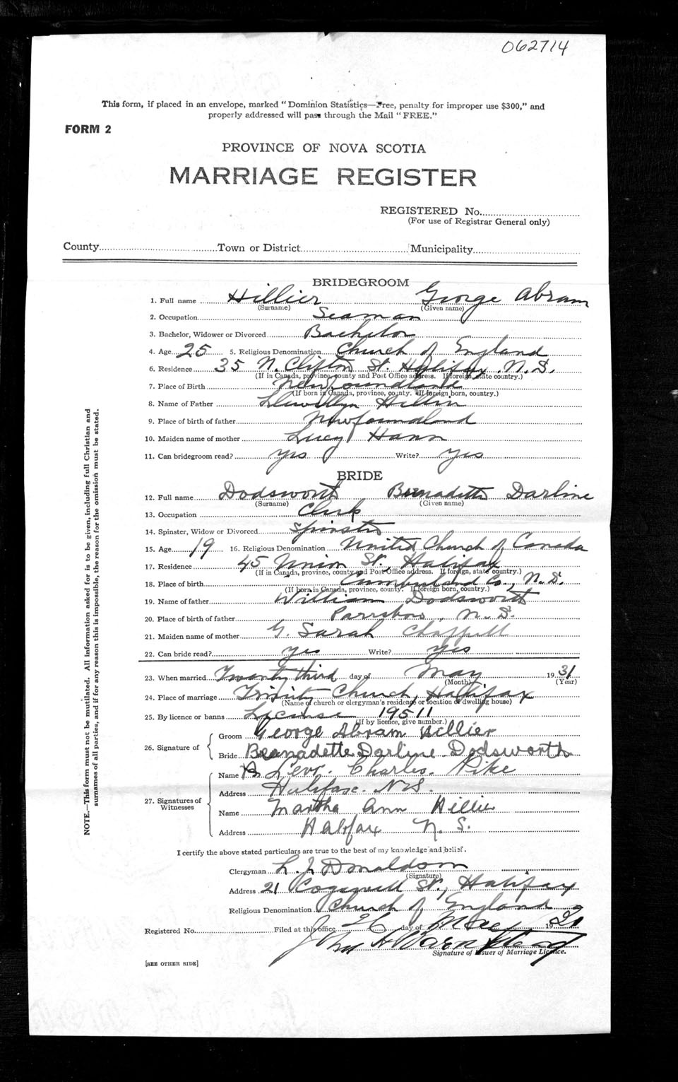 Registration: Year: 1931 number: 62714