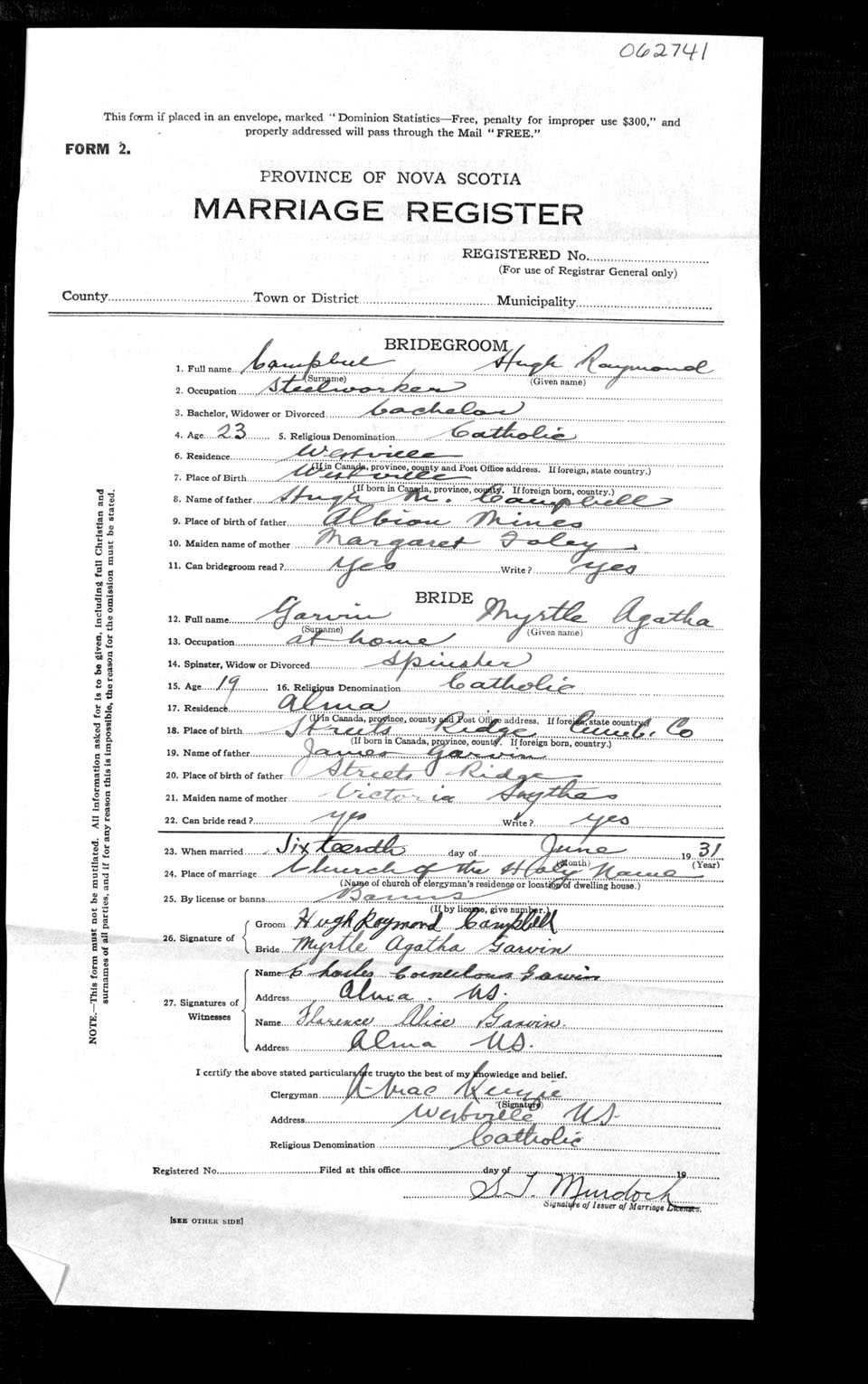 Registration: Year: 1931 number: 62741