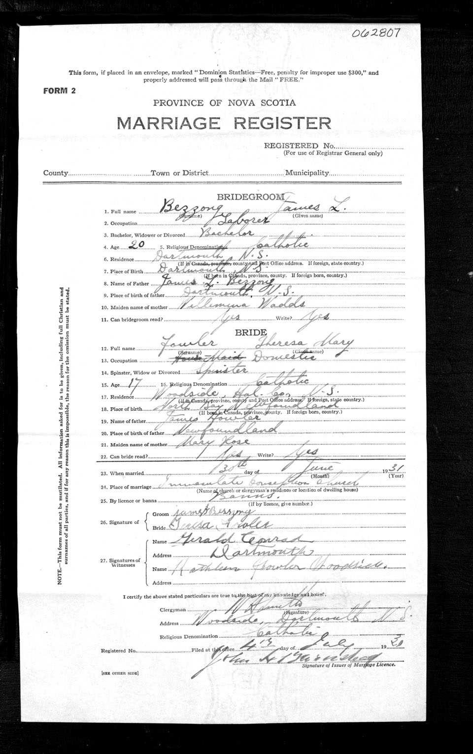 Registration: Year: 1931 number: 62807