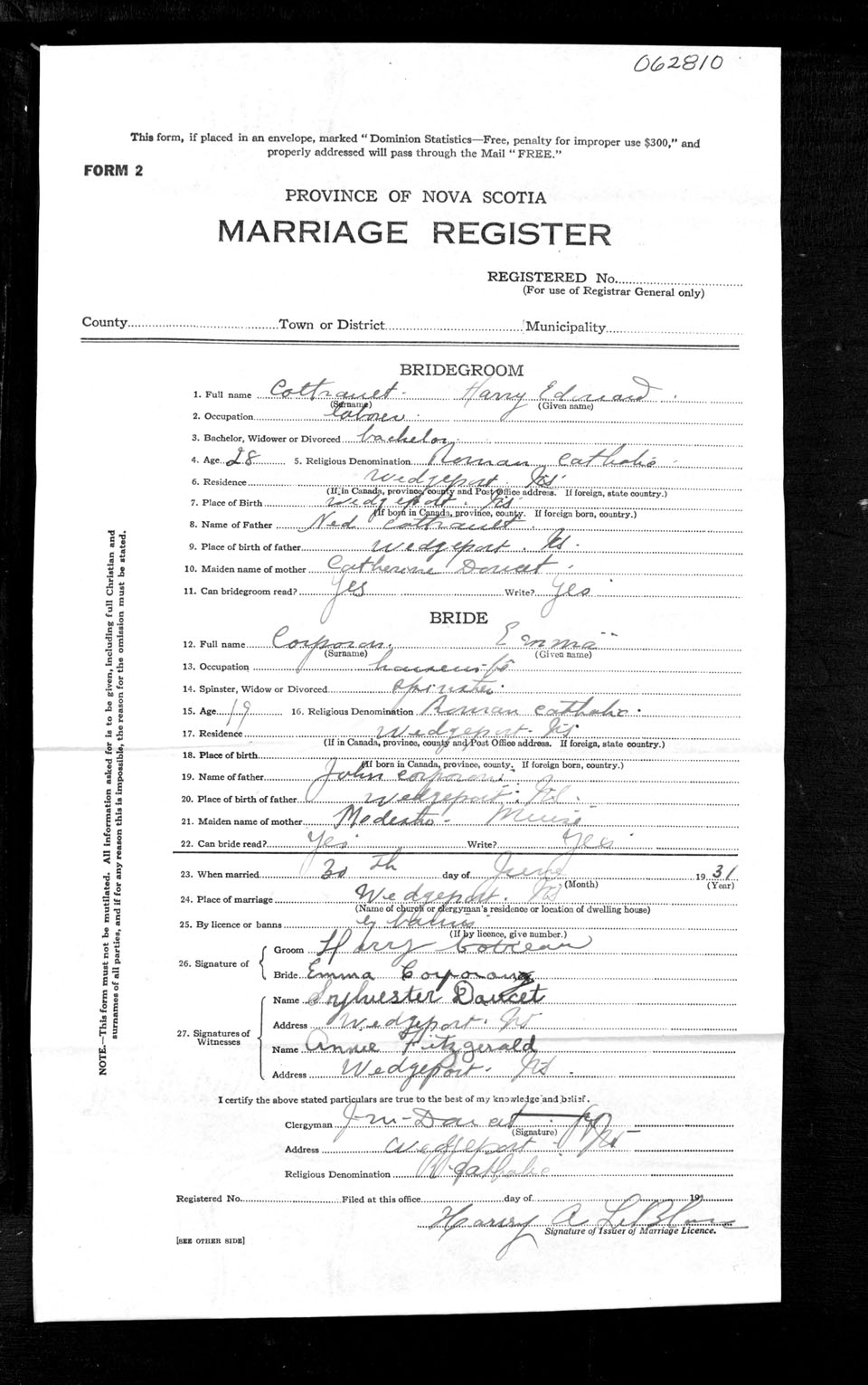 Registration: Year: 1931 number: 62810