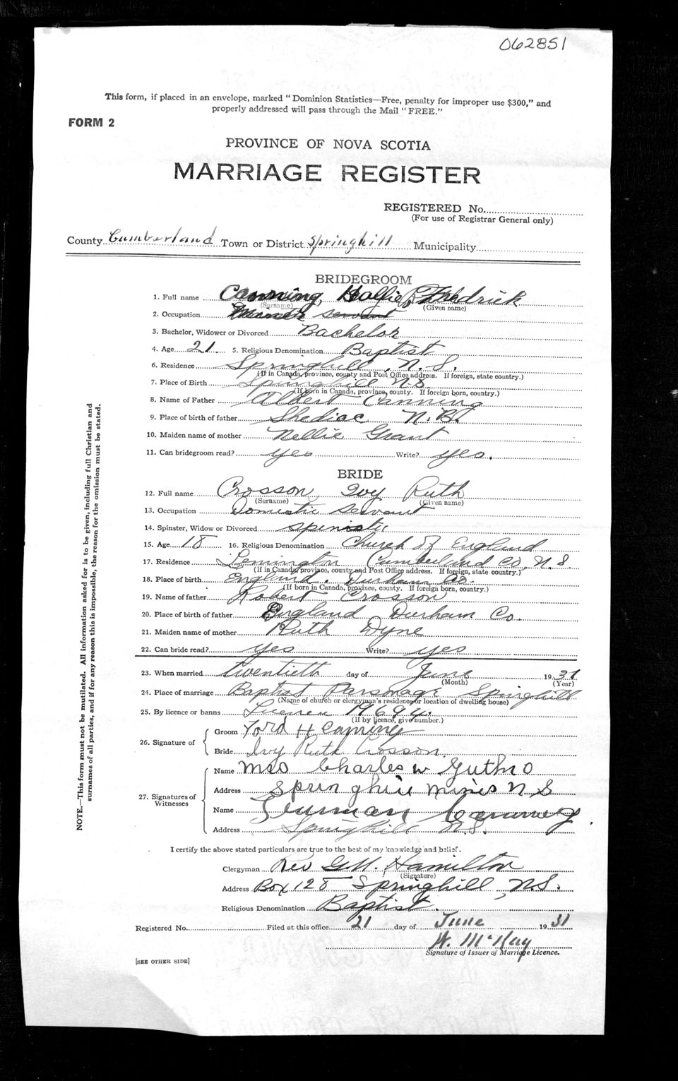 Registration: Year: 1931 number: 62851