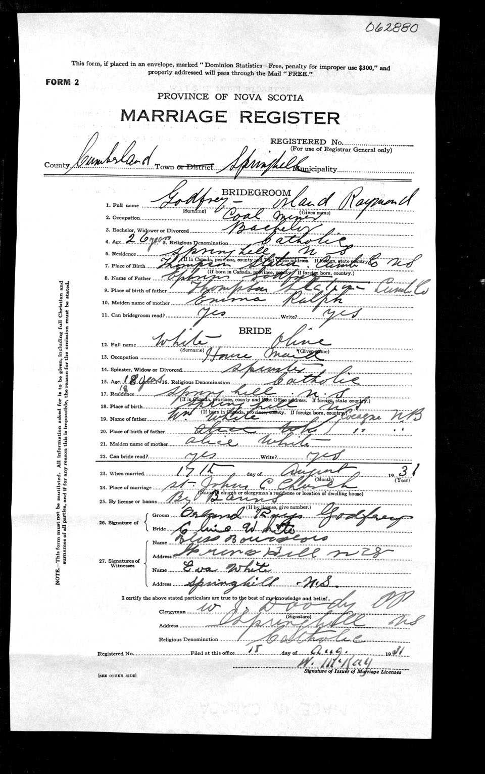 Registration: Year: 1931 number: 62880