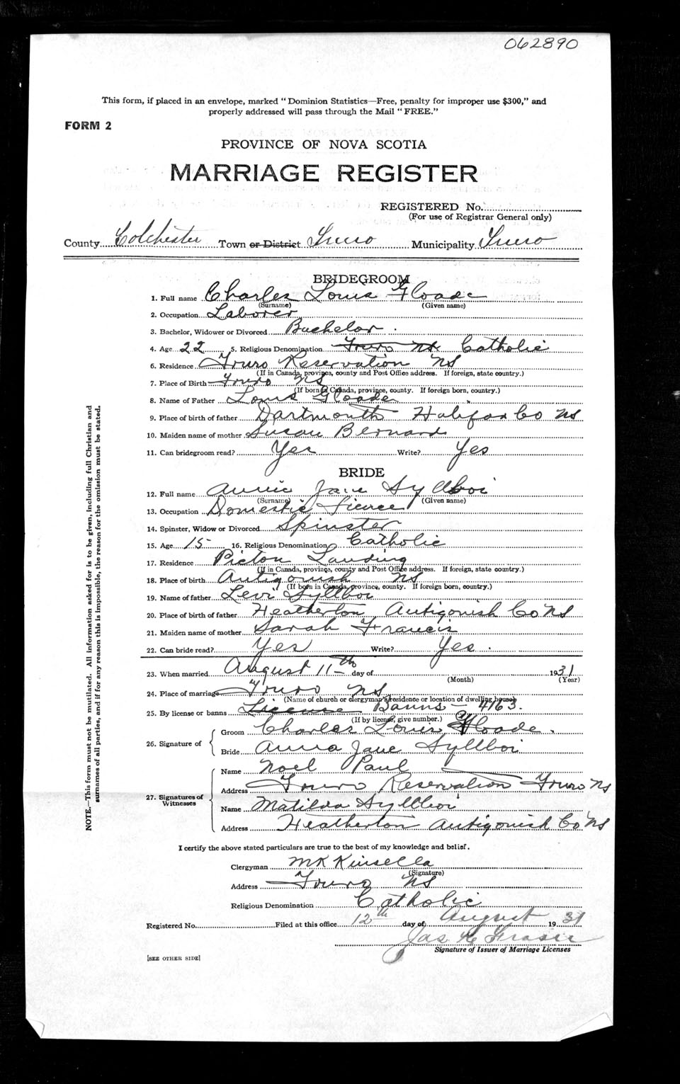 Registration: Year: 1931 number: 62890