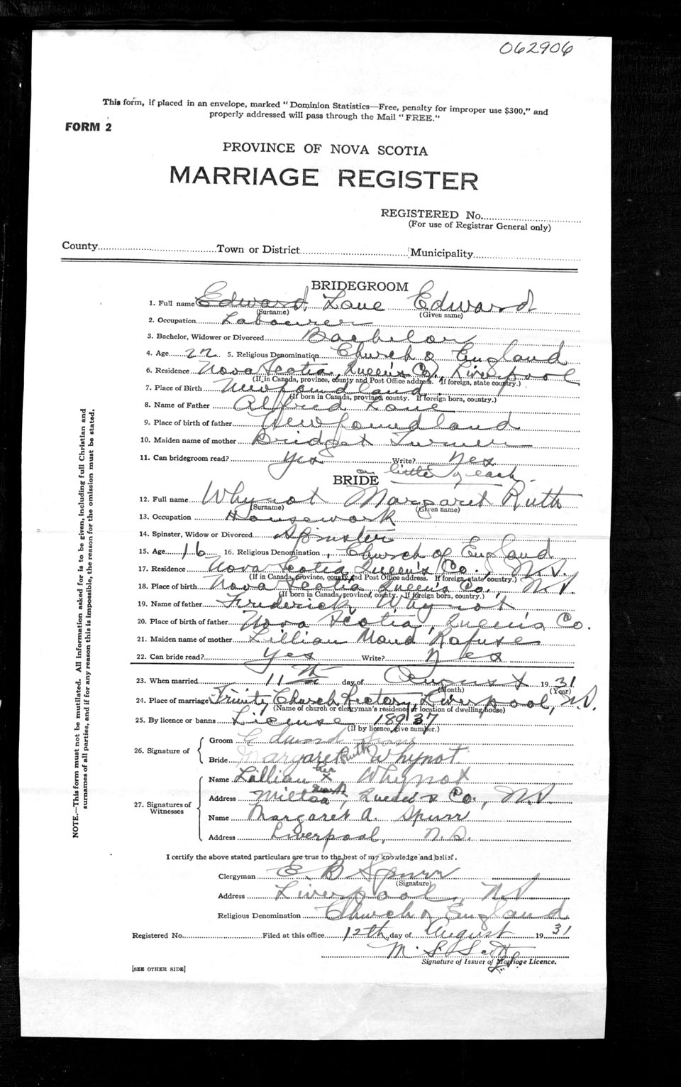 Registration: Year: 1931 number: 62906