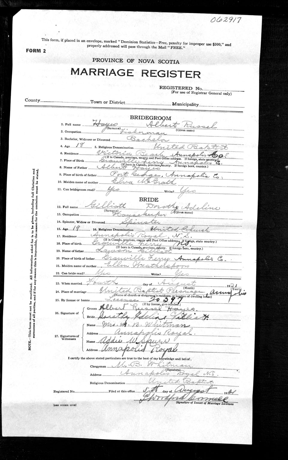 Registration: Year: 1931 number: 62917