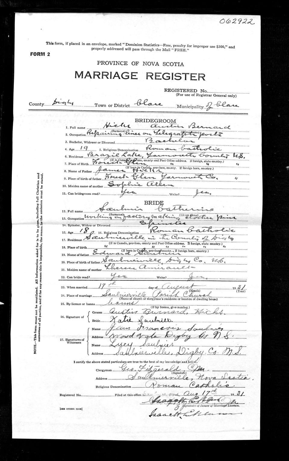 Registration: Year: 1931 number: 62922