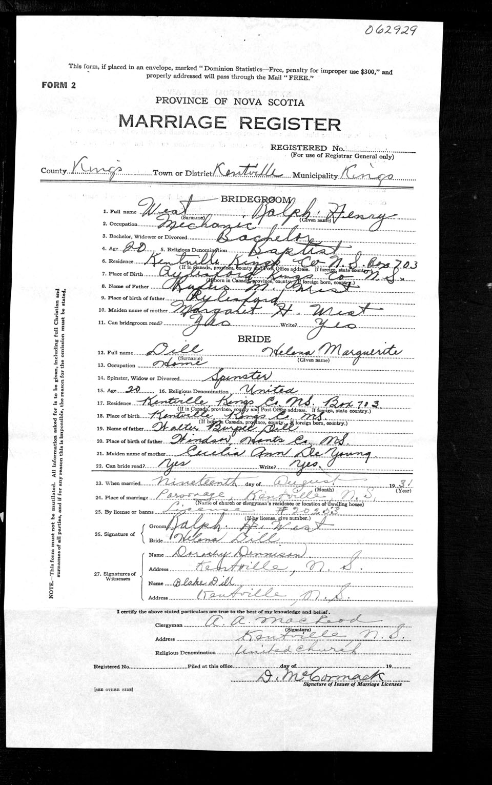 Registration: Year: 1931 number: 62929